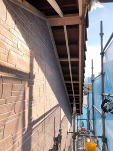 今回の工事内容現地確認を行い、傷んだ軒天材の撤去新しい軒天材への